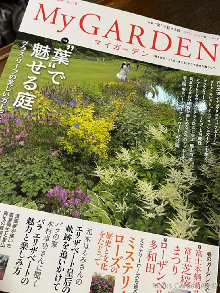 今月発売のマイガーデン 春号(No.118)では特集「葉で魅せる庭」の特集が組まれています。