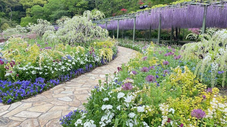 白藤とトンネル仕立ての藤棚 2025年4月29日のブログより フラワーパークの理事長であり、日本女性樹木医第一号の塚本こなみによる園芸教室です。 |